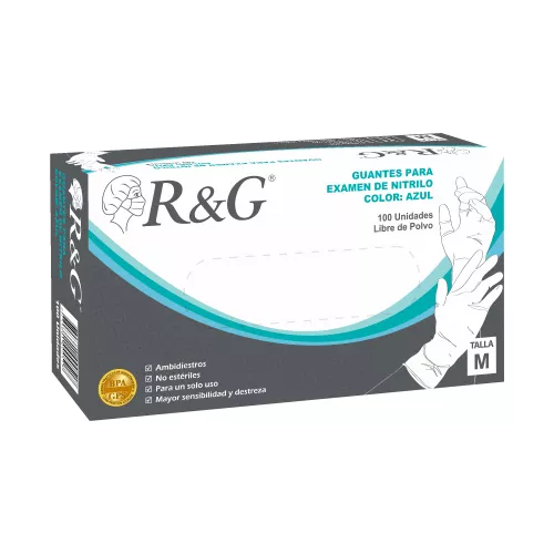 Guante Nitrilo x 100 Azul para exámenes talla M R&G